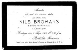 Nils Broddesson - Broman. Född De har begagnat olärd Jordegumma 1845-07-26 i Örahult nr 4 1/16, Oderljunga (L) [1] . Död 1906-08-29 i Västra Broby (L) [4] . Korpral i Kompani Luggude Rote Västra Broby Norra Skånska reg. Han var värvad knekt [6] . |